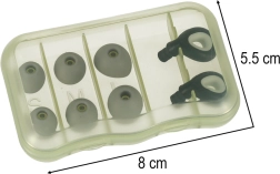 Izdržljivi materijali i vodootporno izvedenje omogućuju uporabu i tijekom plivanja. Čepići su višekratni – jednostavno ih operite vodom i blagim sapunom. U kompletu je čvrsta kutijica za sigurno i higijensko spremanje kod kuće i na putu.