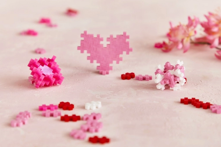 Otkrijte zabavno slaganje s tubom Plus-Plus Volim te: 240 univerzalnih dijelova u obliku „plus” koji se jednostavno spajaju. Djeca mogu stvarati plošne i 3D modele te na originalan način izraziti ljubav motivima u romantičnim bojama.