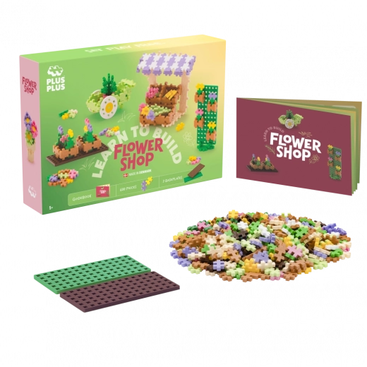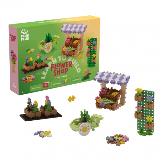 Otkrijte kreativni set za slaganje Plus-Plus Nauči graditi Cvjećarnicu s 600 šarenih dijelova i dvije podloge. Uz pomoć brošure lako ćete sastaviti štand, kolica ili cvjetne aranžmane – a prema mašti i bilo što drugo. Proizvedeno u Danskoj od reciklirane plastike, bez ftalata i uz jednostavno održavanje. Prikladno od 5 godina.