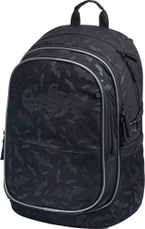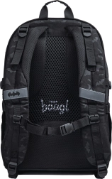 Stilizan školski set s motivom Batmana sadrži lagani ergonomski ruksak kapaciteta 25 l, prostranu pernicu i praktičnu vrećicu za obuću. Ruksak ima anatomski oblikovana leđa s prozračivanjem, podstavljeni pretinac za 15" prijenosno računalo, 3 komore i reflektirajuće elemente. Izrađeno od recikliranih vodoodbojnih materijala s pouzdanim patentnim zatvaračima YKK.