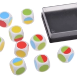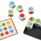 - Sadržaj pakiranja: 2 seta kockica (po 9 za svakog igrača), 2 zatvorive baze, 32 karte s uzorcima, zvonce