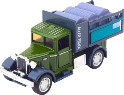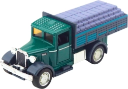 Realistični model klasičnog kamiona oduševit će male i velike ljubitelje radnih vozila. Vjerno izrađena kabina s otvarajućim vratima, kombinacija metalnih dijelova i kvalitetne plastike te solidna nadogradnja daju igrački autentičan izgled i dugi vijek trajanja. Nakon povlačenja unatrag vozilo se zahvaljujući pull back pogonu samo pokreće naprijed.