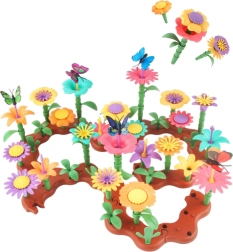 Ovaj cvjetni set donosi bogat raspon oblika i boja za stvaranje raznolikih kompozicija. Djeca mogu kombinirati krune cvjetova, latice, tučke, listove i postolja te tako iznova osmišljavati vrtove, gredice i bajkovite scene. Jednostavno spajanje potiče samostalnost i radost stvaranja.