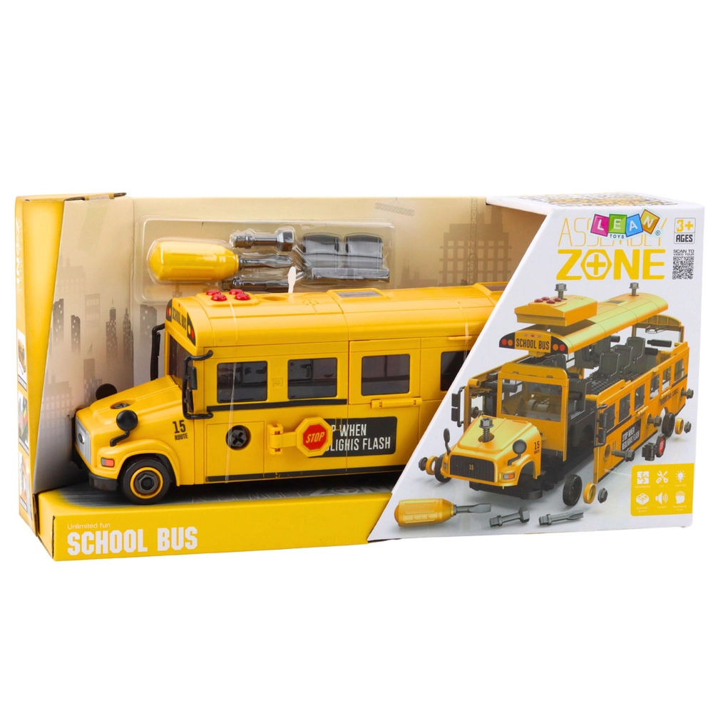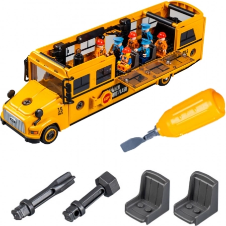 Žuti školski autobus za zavrtanje i rastavljanje oduševit će male tehničare i ljubitelje vozila. Nudi 48 dijelova, tlačni pogon trenjem na stražnje kotače, svjetlosne i zvučne efekte te praktični odvijač s izmjenjivim nastavcima. Otvarajuća vrata i prozori, gumeni kotači i kvalitetna ABS plastika jamče izdržljivost i realističnu zabavu.