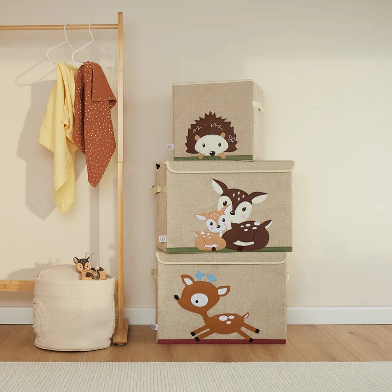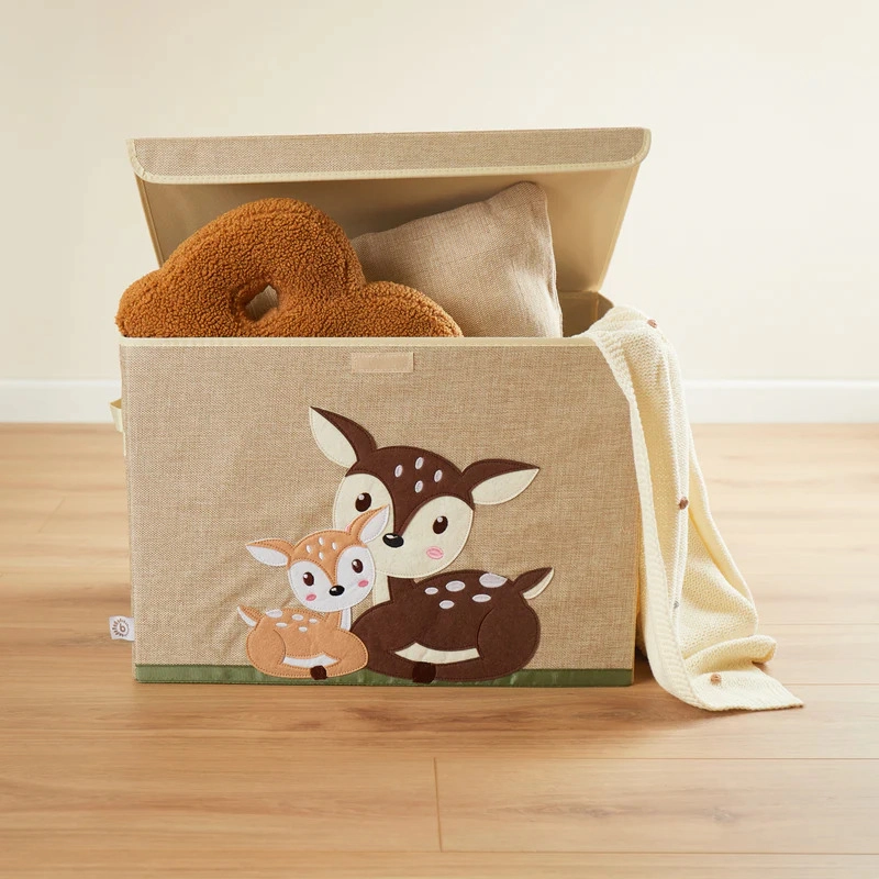 Preslatki dizajn s motivom lančića uljepšat će svaku dječju sobu i istovremeno pružiti praktičan prostor za odlaganje. Kutija je stabilna, ali lagana, pa je djeca i roditelji lako prenose. Sklopiva konstrukcija štedi prostor, a poklopac s čičkom drži sadržaj uredno skrivenim.