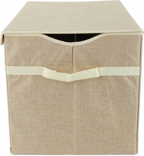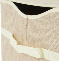 Zahvaljujući bočnim ručkama spremnik je lako prenosiv, a kada vam ne treba, jednostavno ga sklopite i odložite u ormar. Vanjski materijal s lanenim izgledom djeluje elegantno i uklapa se u većinu interijera dječjih soba.