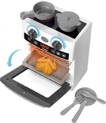 Ova dječja kuhinjica s pećnicom odličan je izbor za male kuhare. Zahvaljujući svjetlosnim i zvučnim efektima vjerno oponaša stvarne kuhinjske uređaje, pa će djeca uživati u satima kreativne zabave. Nakon uključivanja i odabira jednog od tri načina rada pećnica se osvijetli, a kuhinjica počne proizvoditi realistične zvukove kuhanja.