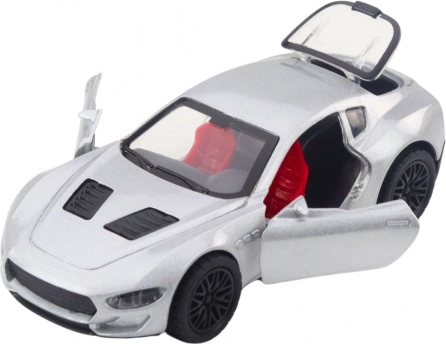 Metalni sportski autić razveselit će male i velike ljubitelje brze vožnje. Ima navijni pull back pogon, svjetlosne i zvučne efekte, otvarajuća vrata i kvalitetnu metalnu karoseriju. Kompaktne dimenzije izvrsne su za putovanja i za kolekciju.
