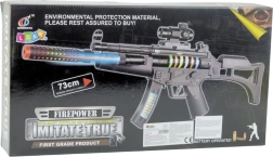 Ova dječja puška izrađena je od kvalitetne i izdržljive plastike koja podnosi intenzivnu igru i sigurna je za djecu. Impozantna duljina od 73 cm pojačava realističan izgled i daje djeci dojam prave akcije. Pritiskom na okidač aktiviraju se svjetlosni i zvučni efekti koji igru čine još privlačnijom.