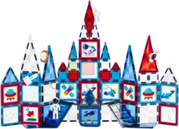 Sagradite rakete, vozila, visoke tornjeve i fantastične 3D konstrukcije inspirirane svemirom. Magnetični dijelovi s otiscima astronauta, raketa i planeta motiviraju djecu na stvaralačku igru i pričanje priča. Prozirni, višebojni elementi izgledaju odlično na svjetlu, a zahvaljujući snažnim magnetima oblici ostaju stabilni.