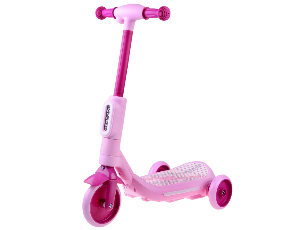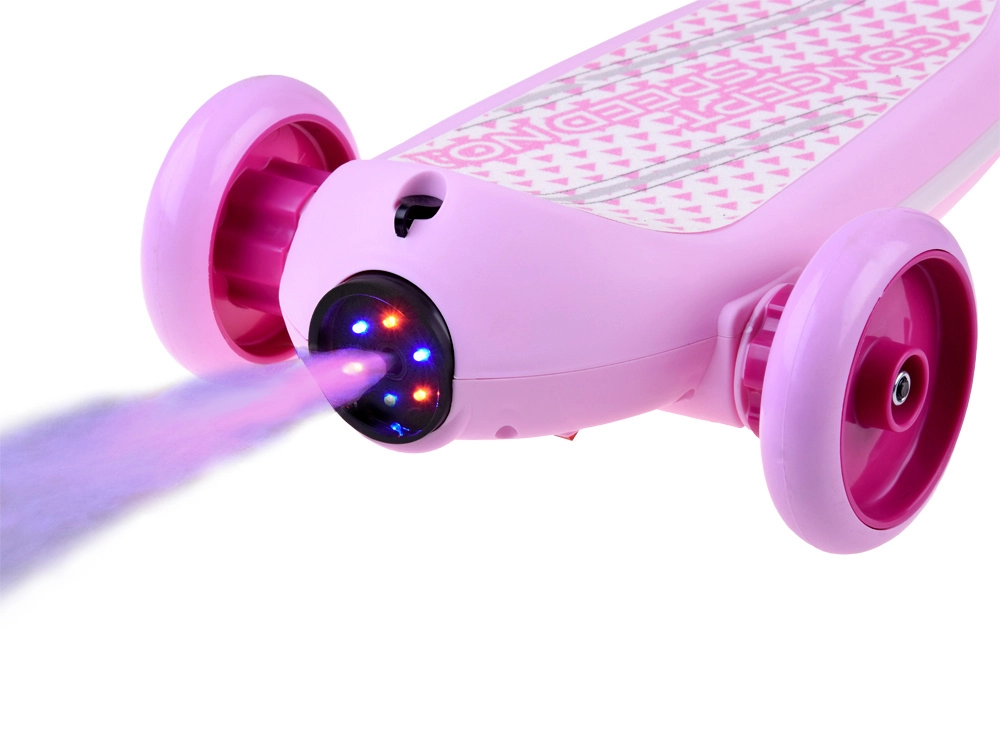 Dječinski električni romobil s tri kotača s LED svjetlima i parnim efektom – Ružičasta