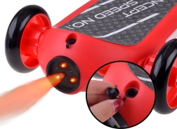 Šareno LED pozadinsko osvjetljenje na podvozju i na upravljaču te ugrađena glazba pretvaraju svaku vožnju u malu predstavu – dijete će se i vidjeti i čuti.