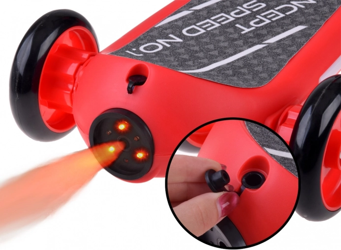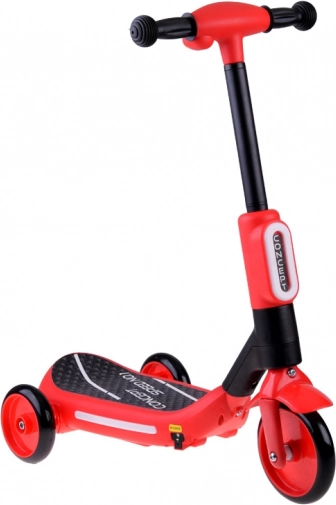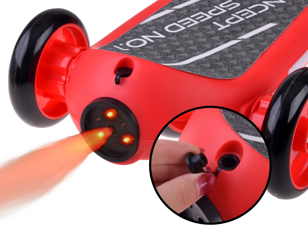 Dječinski električni romobil s tri kotača s LED svjetlima i parnim efektom – Crvena