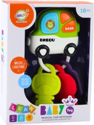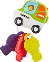 Ovi interaktivni ključevi s upravljačem u obliku autića izvrsna su opcija za bebe i malu djecu. Pritiskom na velike šarene gumbe dijete aktivira bljeskajuća svjetla i zvučne efekte, pritom vježbajući koordinaciju oko–ruka i znatiželju. Meki ključevi s različitim teksturama služe kao griscalica i pružaju olakšanje pri izbijanju zubića.