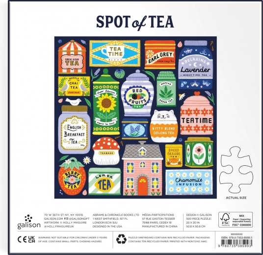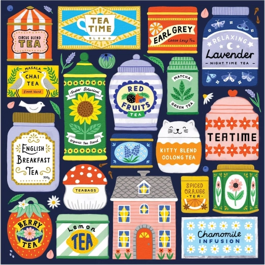 Otkrijte estetski užitak slaganja s motivom stilizirane zbirke čajeva. Zahvaljujući 500 dijelova puzzle nude ugodan izazov, savršen za mirne trenutke kod kuće. Kvadratni format dimenzija cca 51 × 51 cm djeluje uravnoteženo i nakon slaganja lijepo izgleda na zidu ili polici.