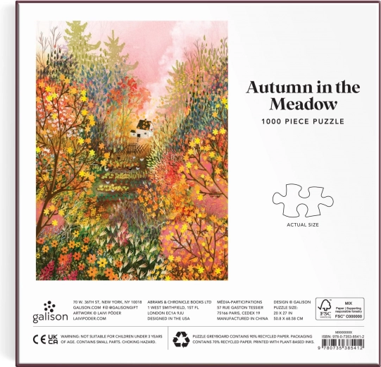 Uživajte u opuštanju uz slaganje GALISON puzzli s motivom jesenske livade od 1000 dijelova. Dio pakiranja je i predložak motiva za ugodnije slaganje. Nakon slaganja nastaje detaljna slika dimenzija 50,8 × 68,6 cm, idealna za uokvirivanje i stilsku dekoraciju interijera.