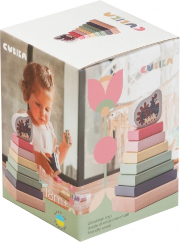 Preslatka drvena slagalica Cubika u pastelnim bojama donosi 8 dijelova za sastavljanje elegantne piramide s kokicom. Poticanje senzomotorike, logičkog razmišljanja i kreativnosti, izrađena je od ekološki uzgojenog drva i obojana sigurnim vodenim bojama. Ispunjava normu EN 71 i nosi certifikat TÜV. Pogodno od 18 mjeseci. Proizvedeno u Europi.