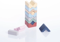 Pastelni toranj XI brenda Cubika promišljena je drvena slagalica od 12 dijelova u nježnim pastelnim nijansama. Djeca dijelove nižu i slažu tako da se pravilno nadovezuju i nastane stabilan toranj visine 16 cm. Zahvaljujući preciznoj obradi drva, igračka je ugodna za rukovanje i sigurna za male dječje ruke.