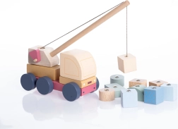 Ova elegantna pastelna CUBIKA auto-dizalica izvrsna je drvena slagalica koja djecu na zabavan način uči koordinaciji i strpljenju. Magnet na dizalici pouzdano hvata metalne pločice u kockama tereta, pa djeca mogu sigurno podizati i premještati pojedine dijelove. Zahvaljujući robusnom drvu i preciznoj izradi igračka podnosi i intenzivnu dječju igru.