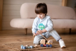 Igračka je izrađena od najkvalitetnijeg javorovog i bukovog drva te je obojena vodorazrjedivim bojama bez mirisa. Ispunjava stroge sigurnosne standarde EN 71 i nosi njemački certifikat TÜV. Savršen izbor za razvoj senzomotoričkih vještina, logičkog razmišljanja, kreativnosti i mašte.