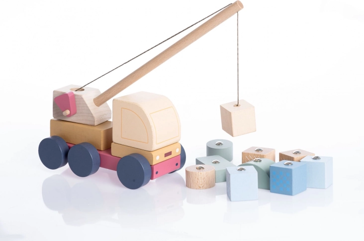 Otkrijte kvalitetnu drvenu igračku iz nove pastelne kolekcije CUBIKA: auto-dizalicu s magnetom i 14 obojenih dijelova. Djeca mogu podizati i premještati teret pomoću magneta, čime razvijaju finu motoriku, logičko razmišljanje i kreativnost. Izrađeno od certificiranog javora i bukve, boje na bazi vode su sigurne i bez mirisa. Proizvedeno u Europi, udovoljava normi EN 71 i ima certifikat TÜV.