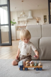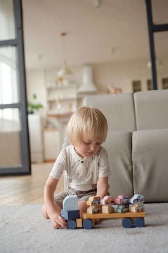 Drvena slagalica Cubika u pastelnim nijansama oduševit će djecu i roditelje preciznom izradom od javora i bukve te sigurnim bojama na bazi vode. Dijelovi se lako hvataju i slažu, pa se djeca prirodno uče koordinaciji i strpljenju. Kamion duljine 32 cm udobno prevozi svih 8 malih autića.