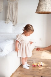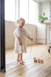 Pasje vozilo za vuču CUBIKA u nježnim pastelnim tonovima razveselit će djecu i roditelje. Zahvaljujući segmentiranoj konstrukciji, psić se pri povlačenju realistički kreće, što potiče djecu na hodanje i aktivnu igru. Drvena izrada od javora i bukve osigurava izdržljivost i dug vijek trajanja, dok su boje na bazi vode potpuno sigurne i bez mirisa.