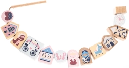 Otkrijte čarobni set za nizanje u nježnim pastelnim bojama brenda CUBIKA, koji razvija finu motoriku, strpljenje, pamćenje i logičko razmišljanje. Set sadrži 12 drvenih elemenata s bajkovitim motivima, vezicu od 45 cm s drvenom iglom i 8 predložaka za zabavno nizanje. Izrađeno od kvalitetnog javora i bukve s sigurnim bojama na bazi vode. Certifikat TÜV, norma EN 71, proizvedeno u Europi.
