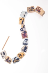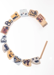 Pastelni CUBIKA set za nizanje donosi zabavnu edukativnu igru s prometnom tematikom. Djeca nižu drvene elemente na uzicu prema priloženim predlošcima ili vježbaju pamćenje i stvaraju vlastite kombinacije. Igra razvija koordinaciju oko–ruka, potiče koncentraciju te uči djecu redoslijedu i prepoznavanju oblika.