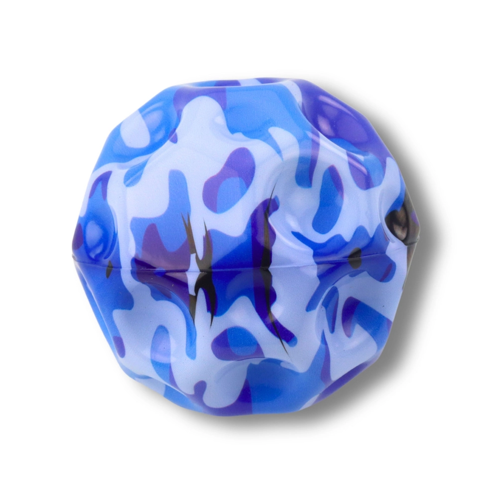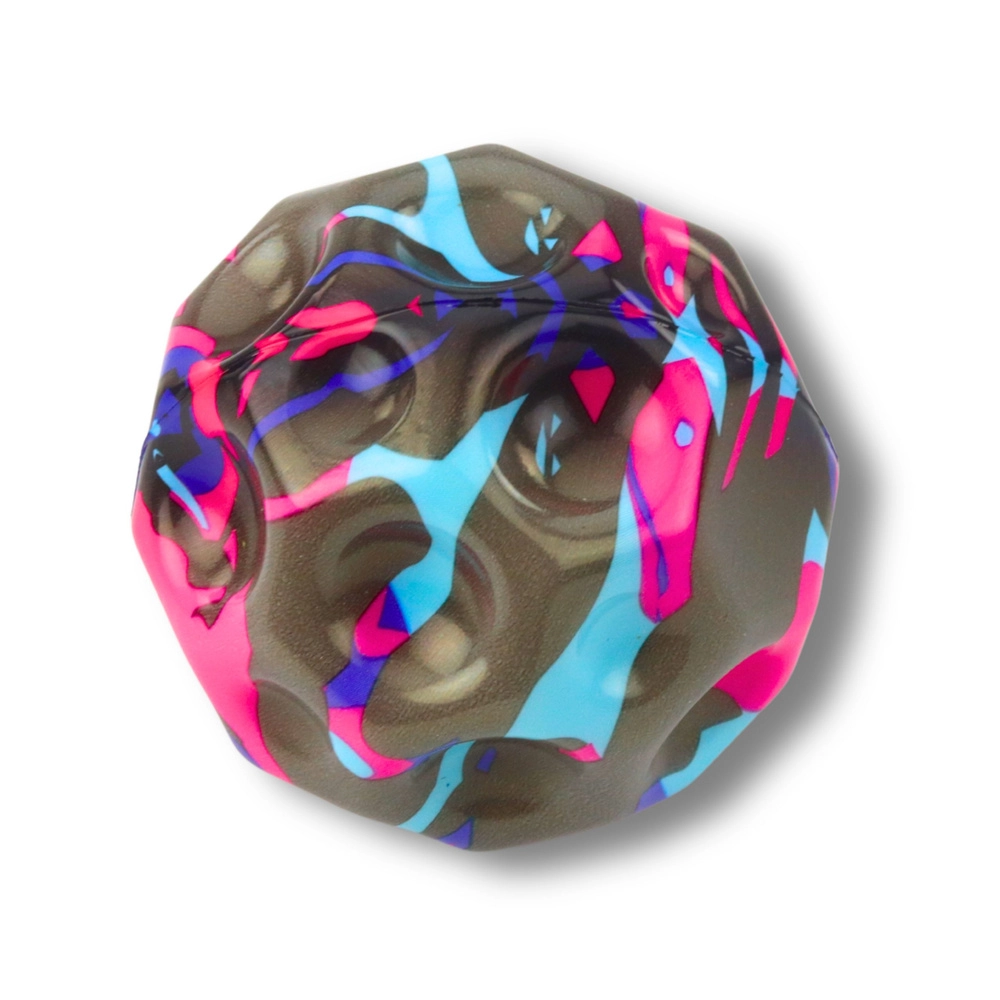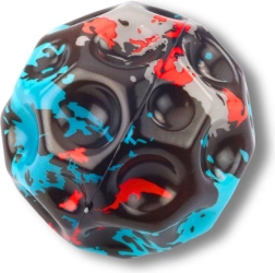 Zabavna i sigurna pjenasta loptica s udubinama promjera 9 cm za djecu i odrasle. Zahvaljujući mekanom i elastičnom materijalu odlično leži u ruci, lako se baca i odbija. Površina s izbočenjima i udubinama osigurava nepredvidive odskoke, koji potiču koordinaciju, reflekse i finu motoriku. Različite boje i uzorci, prodaje se pojedinačno, boja se bira nasumično.