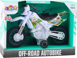 Otkrijte zabavu punom brzinom s ovom realističnom motokros igračkom u bijeloj boji. Nudi svjetlosne i zvučne efekte, robustnu konstrukciju i terenske gume za stabilnu vožnju. Odlično za male ljubitelje off-road motocikala koji žele doživjeti akcijsku i realističnu igru.