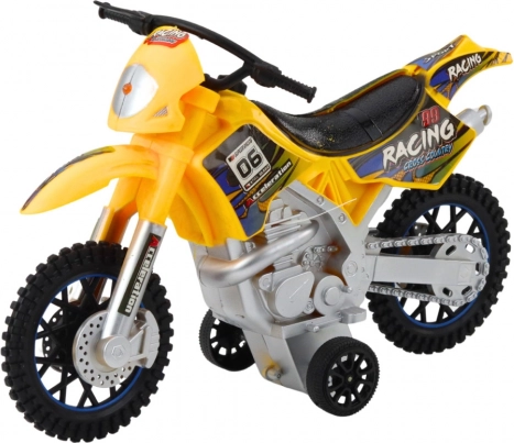 Motocross igračka za male ljubitelje terenskih strojeva nudi realističan dizajn, svjetlosne i zvučne efekte te izdržljivu konstrukciju. Veliki terenski kotači i upadljiva žuta boja s trkaćim elementima naglašavaju sportski izgled i jamče zabavu punu akcije.