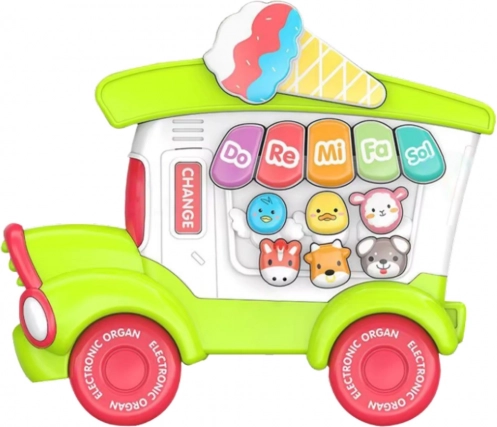 Glazbeno pianino inspirirano kombijem za sladoled odmah privlači izgledom i ugodnim zvukovima. Djeca lako usvajaju osnove glazbe zahvaljujući tipkama s tonovima Do Re Mi Fa Sol i zabavnim melodijama. Igra potiče koordinaciju pokreta, pamćenje i maštu.