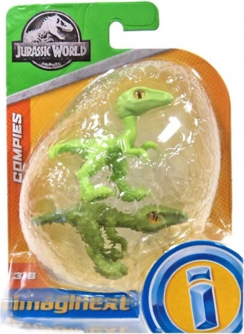 Dvojno pakiranje figurica Compsognathus iz Jurskog svijeta od Fisher-Price/Mattel u blisteru u obliku dinosaurovog jajeta. Odlično za igru i kolekciju.