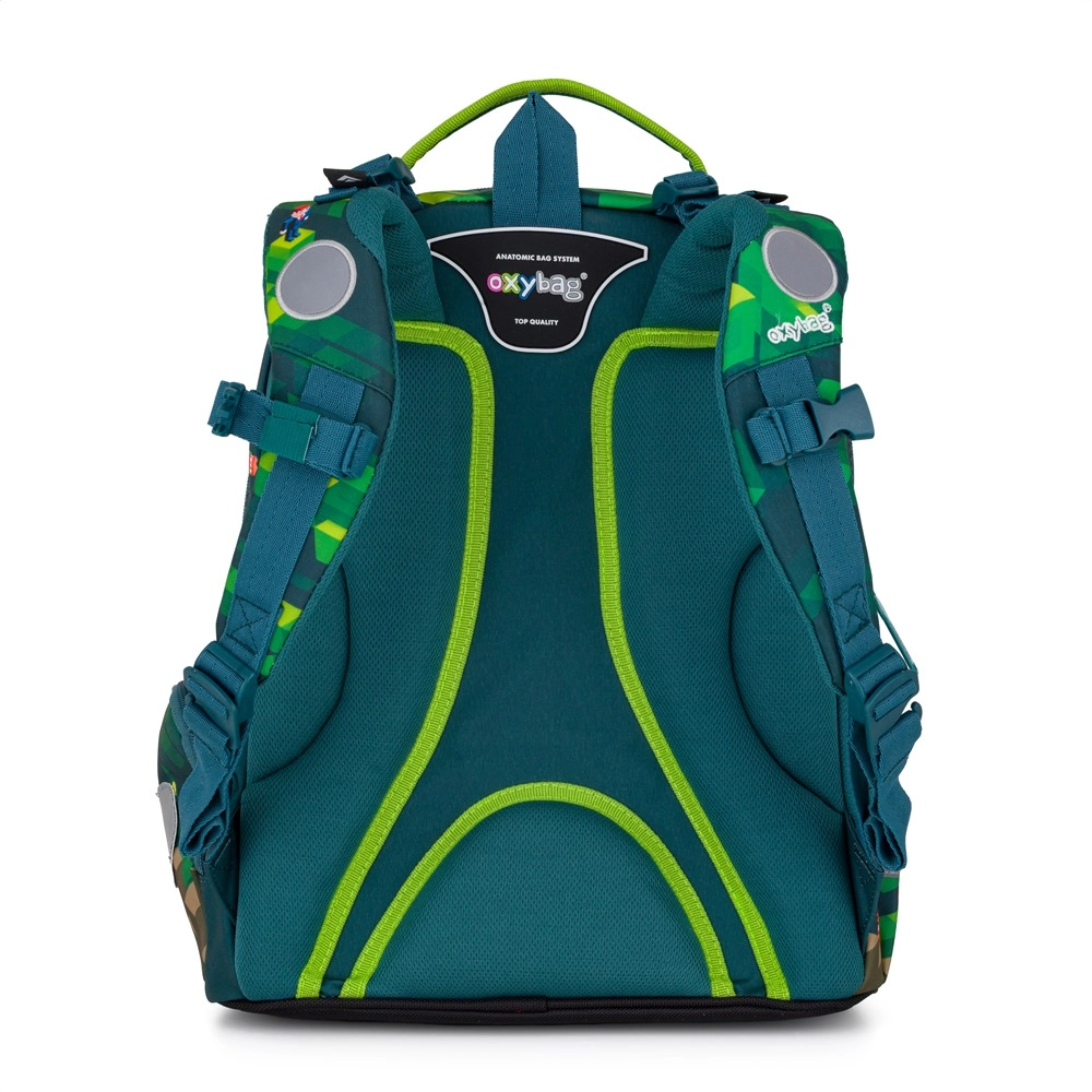 OXY GO Playworld je promišljeni školski ruksak koji kombinira udobnost, sigurnost i atraktivan dizajn. Savršeno pristaje leđima zahvaljujući anatomski oblikovanom i prozračnom leđnom panelu duljine 39 cm. Podesive naramenice dopunjene su dodatnim kukicama za učvršćivanje duljih krajeva, tako da ništa ne smeta pri hodu.