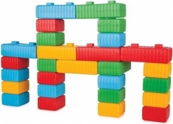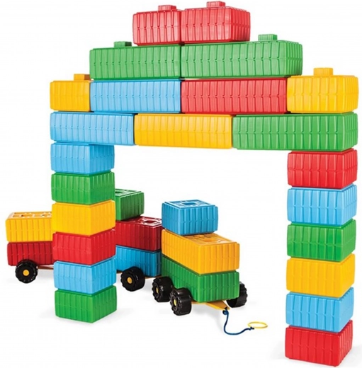 Set nudi široke mogućnosti: od autića na kotačima do jednostavnih zgrada. Tijekom slaganja djeca prirodno uvježbavaju prepoznavanje oblika i boja te razvijaju koordinaciju oko–ruka.
