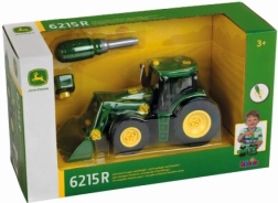 Otkrijte zabavu slaganja i igre s realističnim modelom traktora John Deere 6215 R. Složite podvozje, stavite gume, dodajte sjedalo, vozačku kabinu i haubu motora – za tren ćete imati spreman funkcionalan model s prednjim utovarivačem.