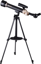 Započnite istraživati svemir s ovim univerzalnim astronomskim teleskopom. Nudi uvećanje 30x i 60x, žarišnu duljinu 500 mm i stabilan aluminijski stalak visine 1,3 m. U pakiranju se nalazi kompletan set pribora uključujući okulare, tražilo, zenitno zrcalo i držač za telefon. Dio kompleta je i poseban membranski filter za sigurno promatranje Sunca.