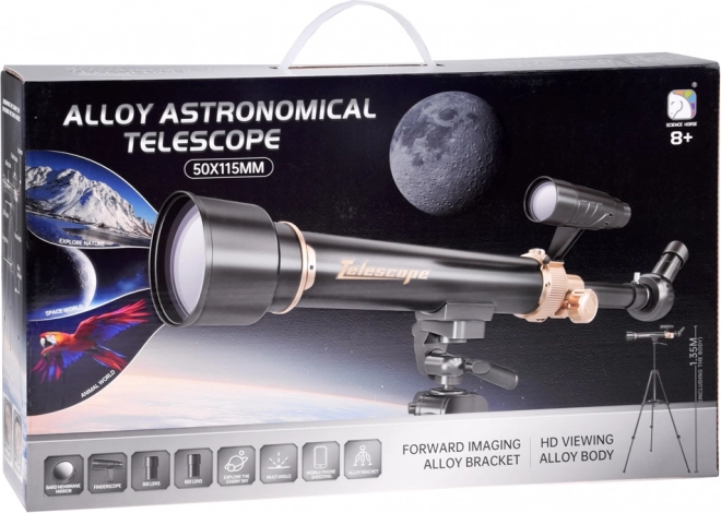 Idealan izbor za početnike i entuzijaste. Zahvaljujući žarištu od 500 mm vidjet ćete detalje Mjeseca, sjajne planete i zvjezdane skupove. Glatko okretanje od 360° i podešavanje nagiba olakšavaju ciljanje objekata, dok aluminijski stalak osigurava stabilnost pri promatranju i snimanju preko pametnog telefona.