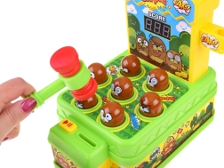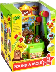 Otkrijte obiteljsku zabavu koja osvaja od prvog udarca. Na ploči se nasumično osvjetljava 7 krtica – vaš je zadatak što brže pogoditi mekanim gumenim čekićem upravo one koje svijetle. Svaki pogodak dodaje bodove koje vidite na preglednom zaslonu. Igra razvija finu motoriku, koordinaciju i brzinu reakcije.