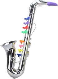 Otkrijte zabavu s dječjim saksofonom u srebrnoj boji s raznobojnim tipkama. Ovaj lagani instrument ne zahtijeva baterije, siguran je, ekološki i uvijek spreman za sviranje. Zahvaljujući 8 tipki potiče razvoj sluha, ritmičkog osjećaja i fine motorike.