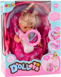 - interaktivna lutka 30 cm, nosiljka s naramenicama i dekicom na čičak, duda na lančiću, bočica, originalno pakiranje
