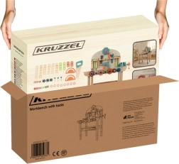 Otkrijte kreativni svijet malih majstora s robusnim drvenim radnim stolom 3u1 KRUZZEL. Od sigurnih, prirodnih materijala i s bogatom opremom alata, potiče motoriku, kreativnost i učenje kroz igru. Zahvaljujući čvrstoj konstrukciji, zaobljenim rubovima i pokretnim elementima idealan je za dječju sobu, vrtić i igraonicu.