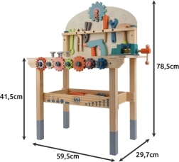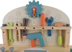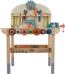 Dio paketa je bogat set alata i spojnog materijala koji razvija finu motoriku, koordinaciju oko–ruka i logičko razmišljanje. Praktična donja polica nudi prostor za pohranu dijelova i dodataka. Sjajan poklon koji će razveseliti svakog malog majstora.