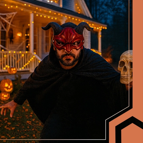 Univerzalna veličina i rastezljivo pričvršćivanje osiguravaju da odgovara većini odraslih i starijim tinejdžerima. Realistični 3D elementi lica i rogova stvaraju dojmljiv efekt koji pristaje muškim i ženskim kostimima – od vražjeg i demonskog do čudovišta i mitoloških likova.