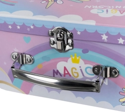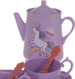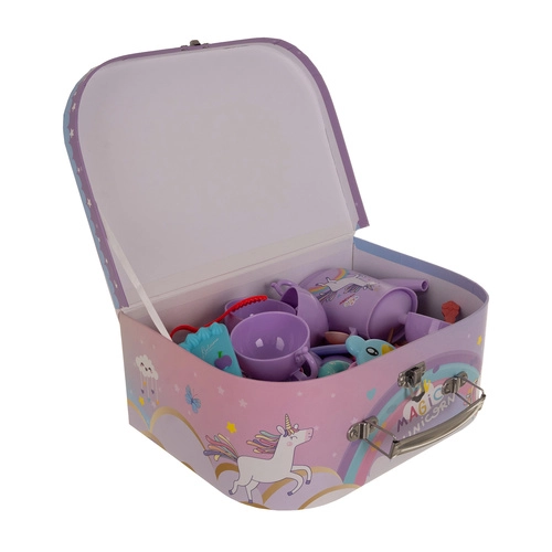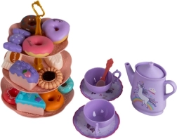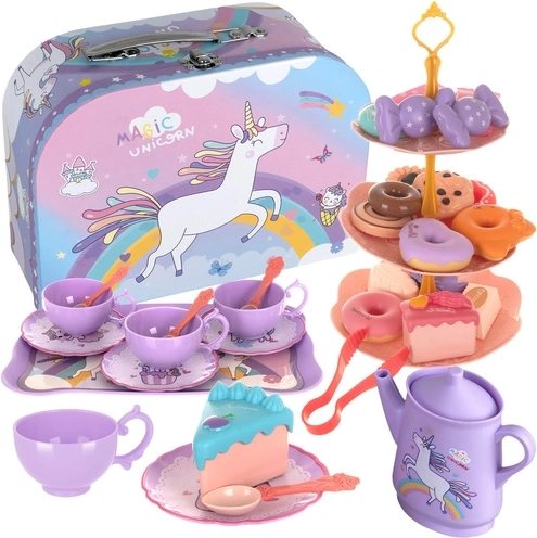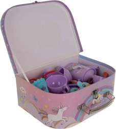 Presladak dječji čajni set u praktičnom koferu razveselit će svakog malog domaćina. Sadrži čajnik, šalice, tanjuriće, poslužavnik, troslojno postolje za slastice i 21 poslasticu. Zahvaljujući kvalitetnim materijalima otporan je na pucanje i ogrebotine, potiče kreativnu igru i razvoj socijalnih vještina, a njegova se glatka površina lako čisti.