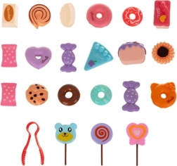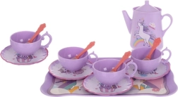Sadržaj pakiranja: kofer s ručkom i metalnim zatvaranjem, troslojno postolje za slastice, čajnik s poklopcem, 4 šalice, 4 tanjurića, 4 ukrasne žličice, kliještca, poslužavni pladanj, 21 poslastica (bomboni, krafne, makaroni, keksi), upute za uporabu, smeđa transportna kutija.