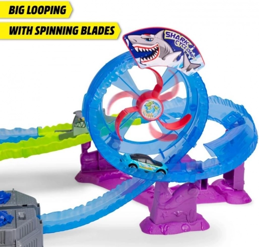 Uživajte u adrenalinskoj vožnji na motoriziranoj autostazi s temom morskog psa. Automobili jure punom brzinom kroz petlju, prolaze kroz vodeni tunel i mogu sletjeti ravno kod golemog morskog psa – no on može u svakom trenutku zatvoriti čeljusti! Integrirani turbo booster izbacuje vozila na maksimalnu brzinu i osigurava intenzivan trkaći doživljaj.