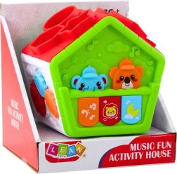 Kućica nudi 3 glazbena načina (pjesmice, melodije, zvukovi životinja), uči boje i brojeve te pruža raznolike osjetilne poticaje za vid, sluh i dodir. Sigurna izrada bez oštrih rubova i kvalitetni materijali osiguravaju mirnu i radosnu igru.