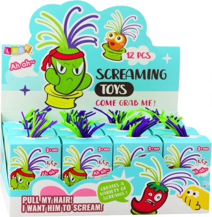 Zabavna interaktivna figurica „Vrišteće povrće“ nasmijat će svako dijete. Povlačenjem za šarene „vlasi“ ispušta razne smiješne vrišteće zvukove. Jednostavno upravljanje, sigurni materijali i kompaktna veličina čine je sjajnim poklonom. Prodaje se po 1 komadu, motiv se bira nasumično.